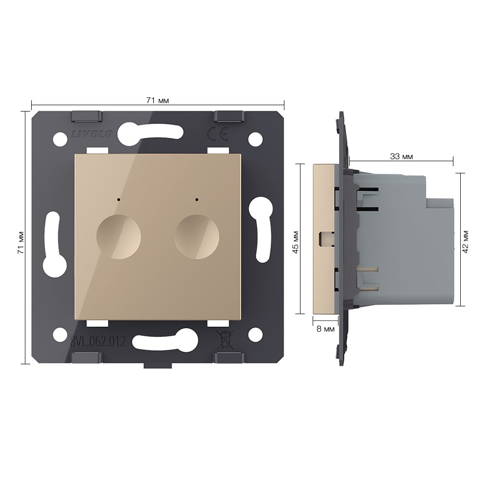 Двухклавишный сенсорный выключатель Module, цвет золотой (механизм) Livolo