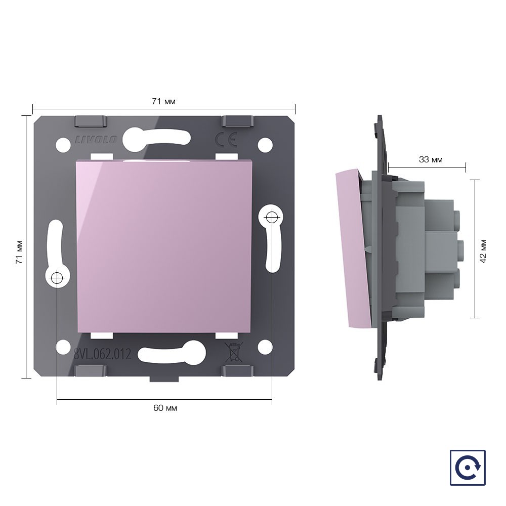Одноклавишная механическая кнопка (звонок), цвет розовый (механизм) Livolo