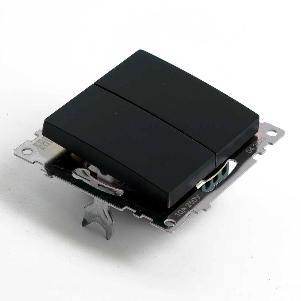 Переключатель 2-клавишный (механизм), STEKKER GLS10-7107-05, 250V, 10А, серия Катрин, черный