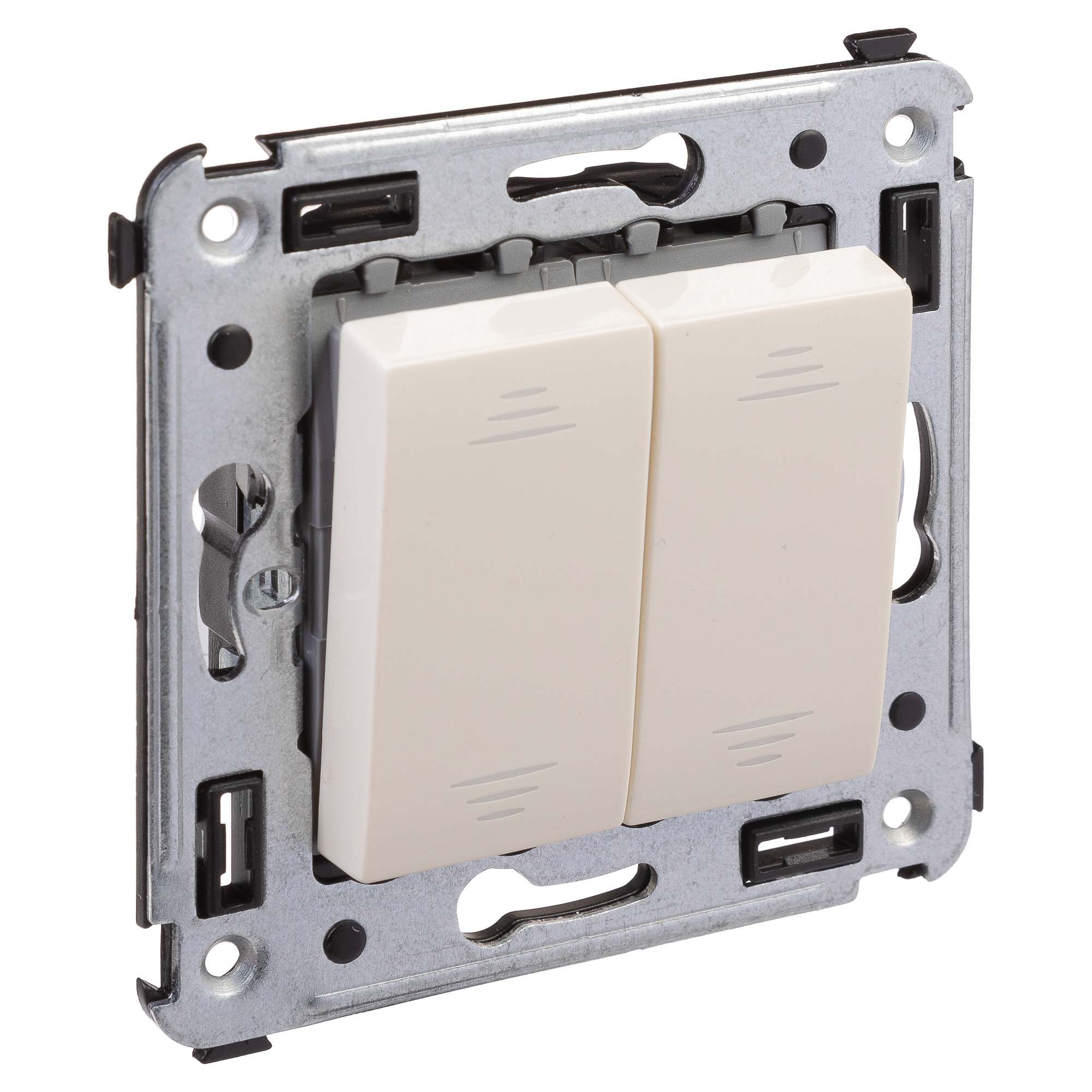 Переключатель двухклавишный в стену, "Avanti", "Ванильная дымка" DKC