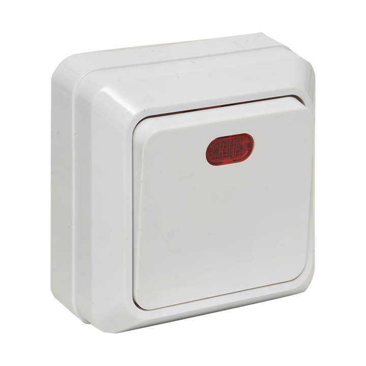 Рим Выключатель 1-клавишный с индикатором 10А белый EKF