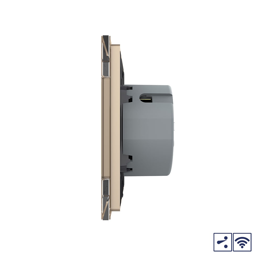 Сенсорный проходной радиоуправляемый выключатель Quadro 1 клавиша 1 пост Золотой Livolo