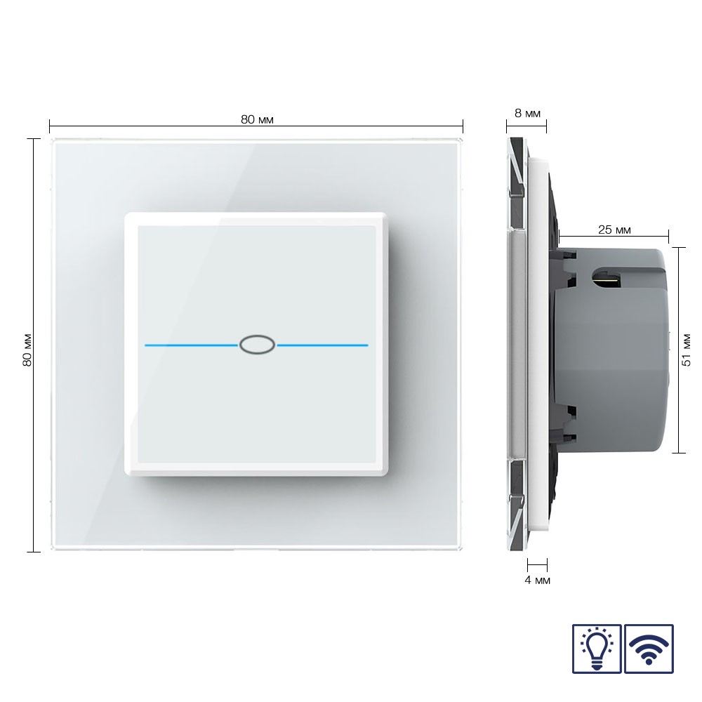 Сенсорный радиоуправляемый диммер Quadro 1 клавиша 1 пост Белый Livolo