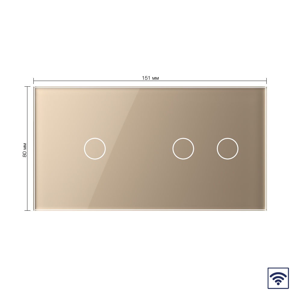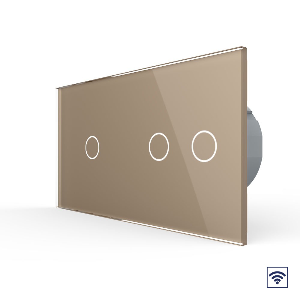 Сенсорный радиоуправляемый выключатель 3 клавиши (1-2), 2 поста Золотой Livolo