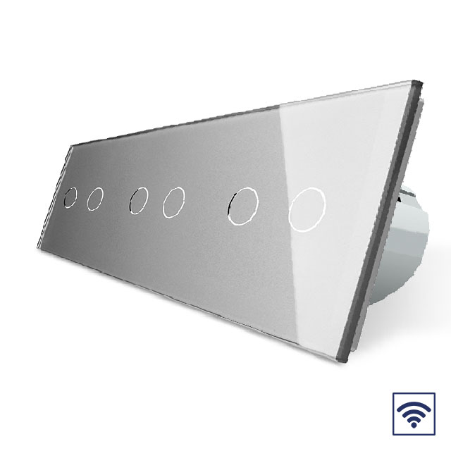 Сенсорный радиоуправляемый выключатель 6 клавиш 3 модуля Серый Livolo