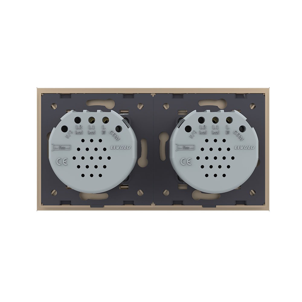 Сенсорный выключатель 2 клавиши (1-1), 2 поста Золотой Livolo