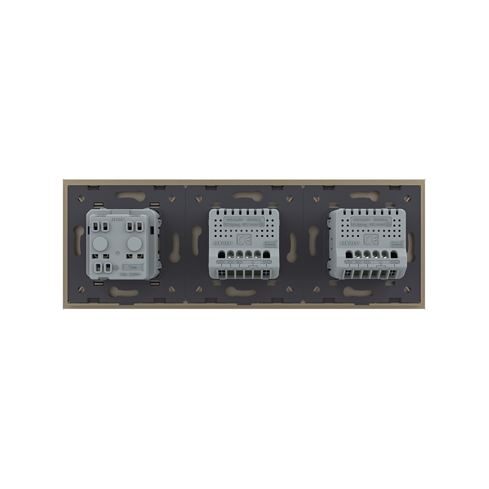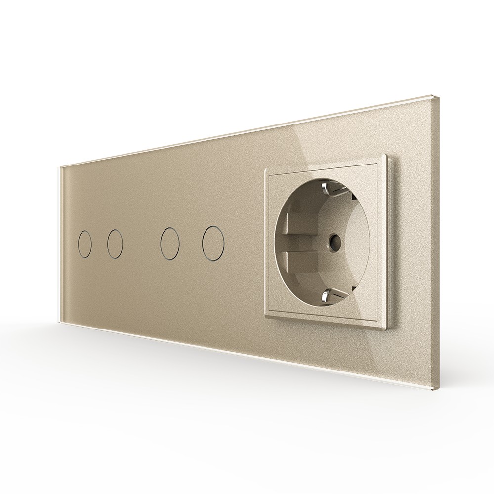 Сенсорный выключатель 4 клавиши (2-2) с розеткой 3 поста, цвет шампань Livolo