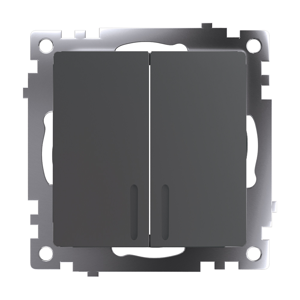 Выключатель 2-клавишный c индикатором (механизм) 250В, 10А, серия Катрин, графит, GLS10-7102-06 STEKKER