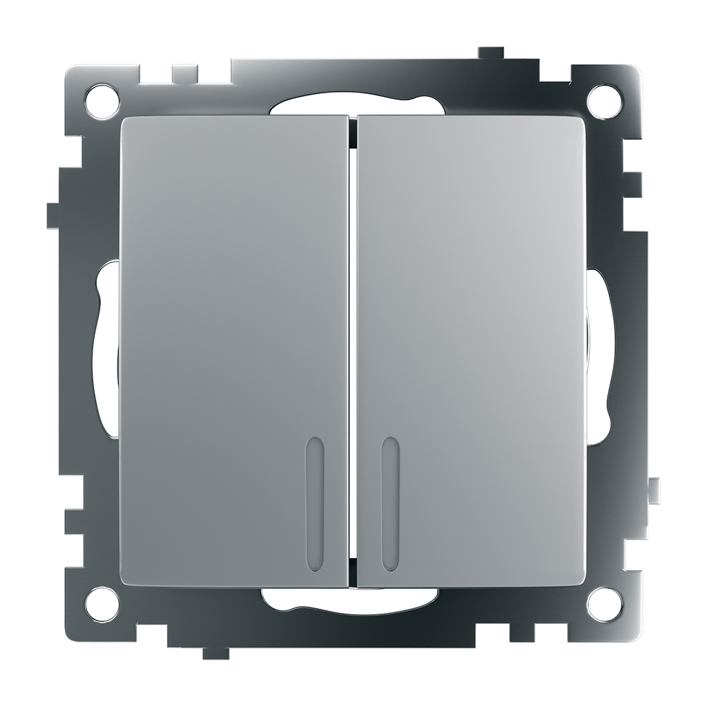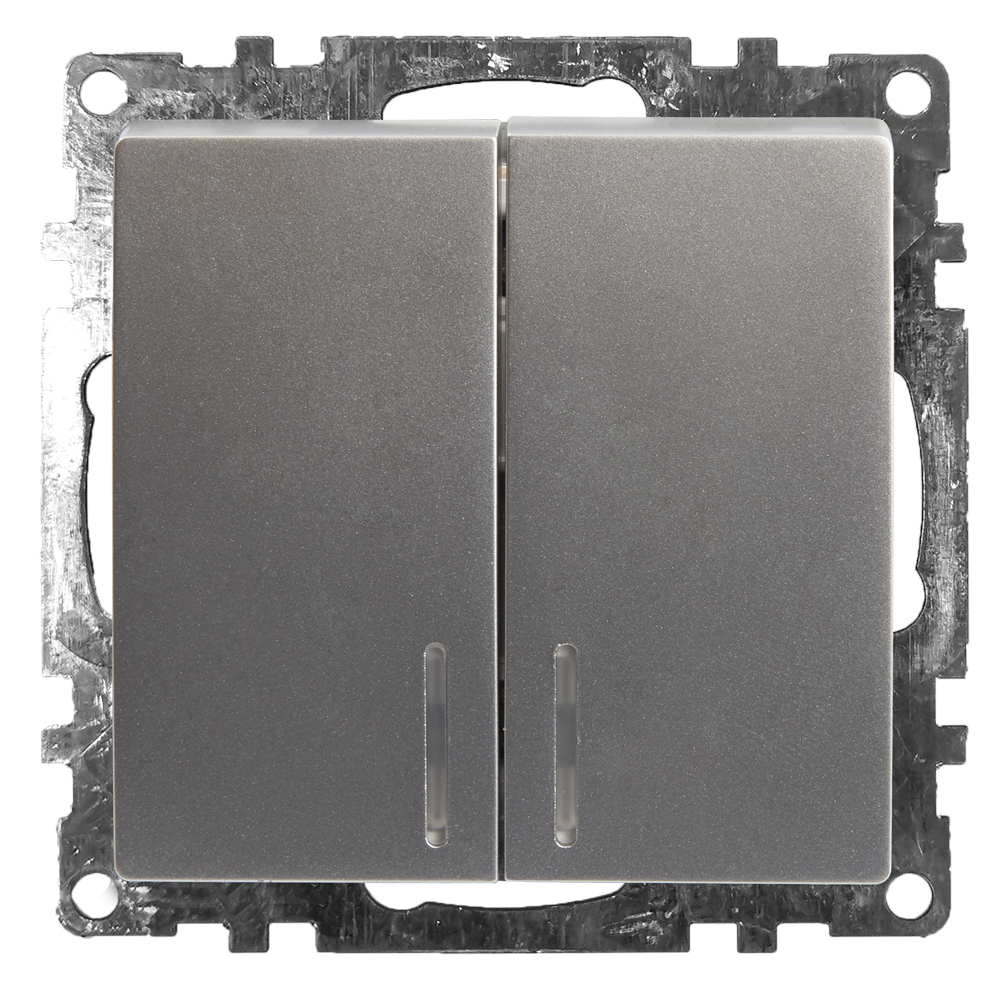 Выключатель 2-клавишный c индикатором (механизм), STEKKER GLS10-7102-03, 250В, 10А, серия Катрин, серебро