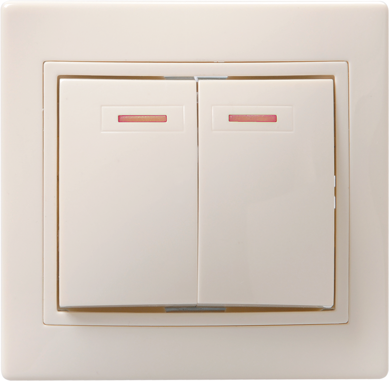 Выключатель 2-клавишный с индикацией ВС10-2-1-ККм 10А КВАРТА кремовый IEK