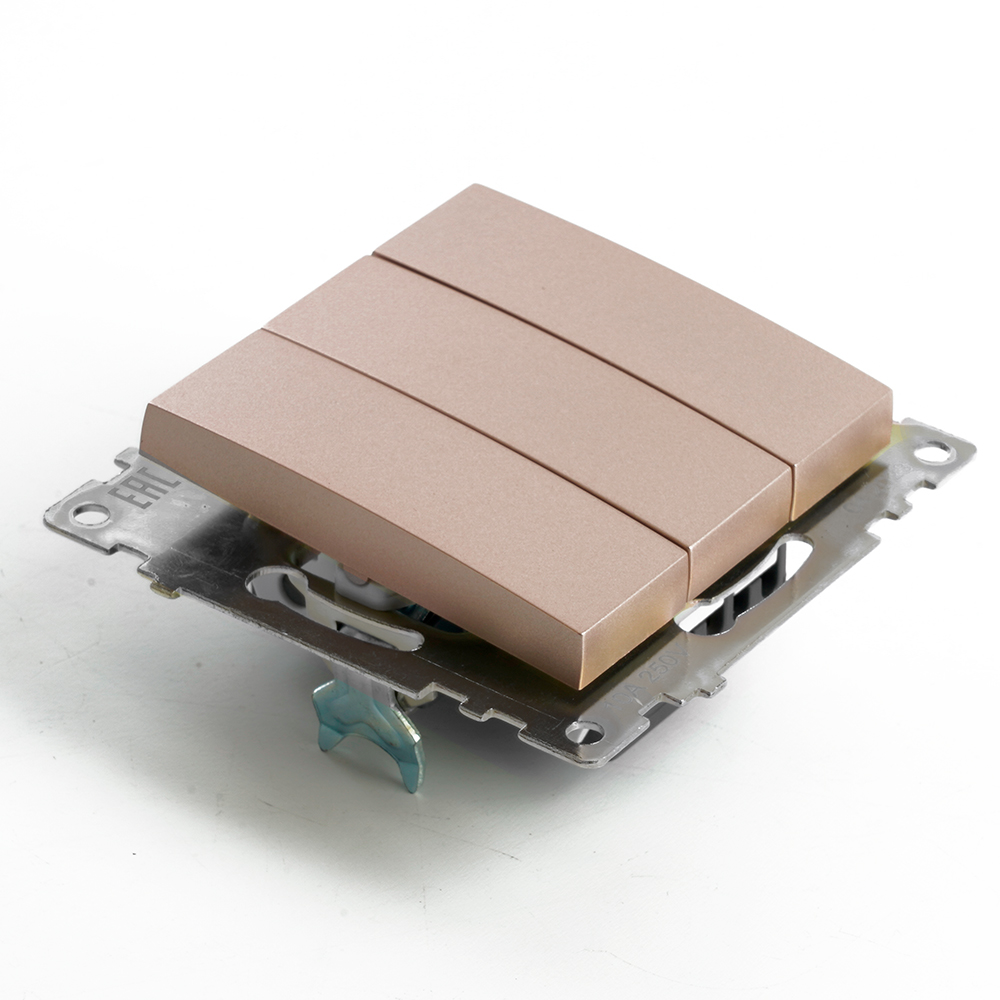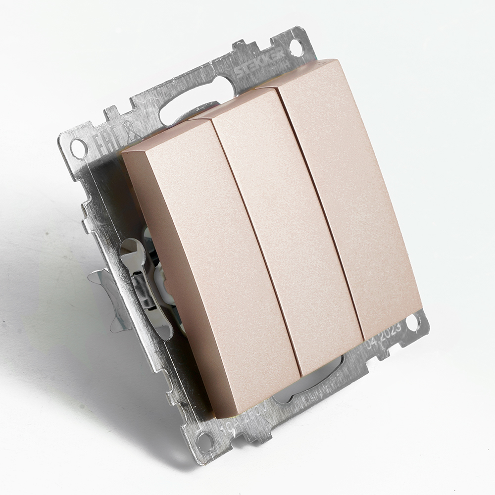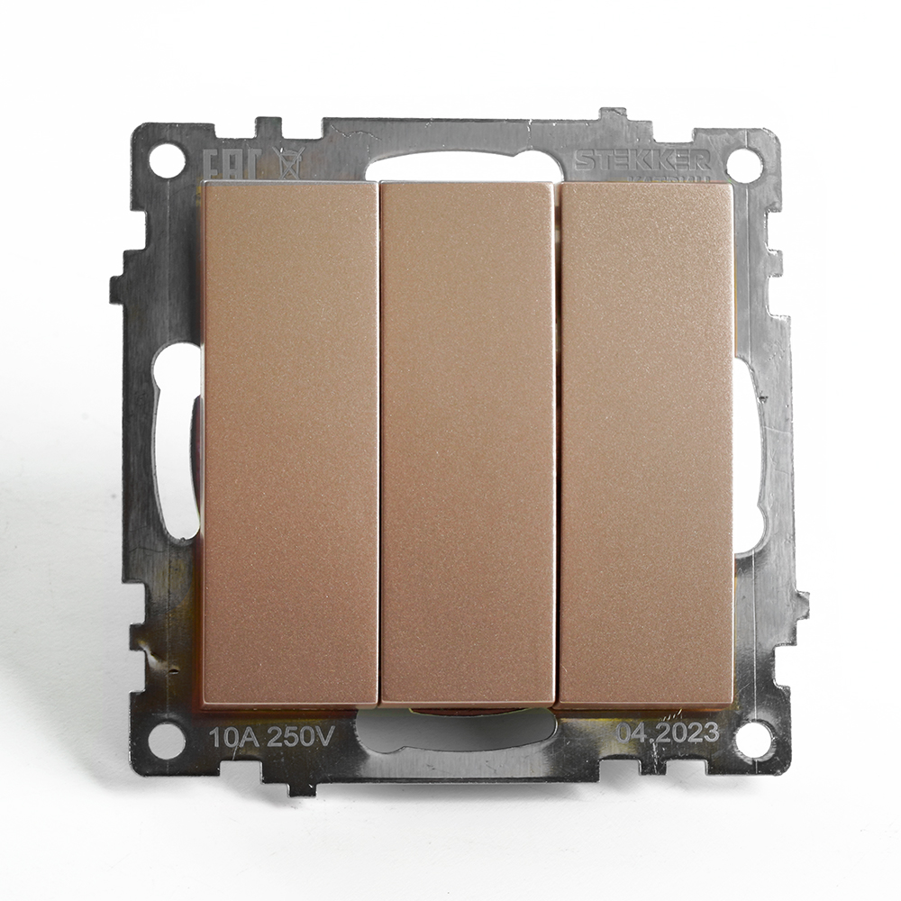 Выключатель 3-клавишный (механизм), STEKKER GLS10-7108-02, 250V, 10А, серия Катрин, шампань