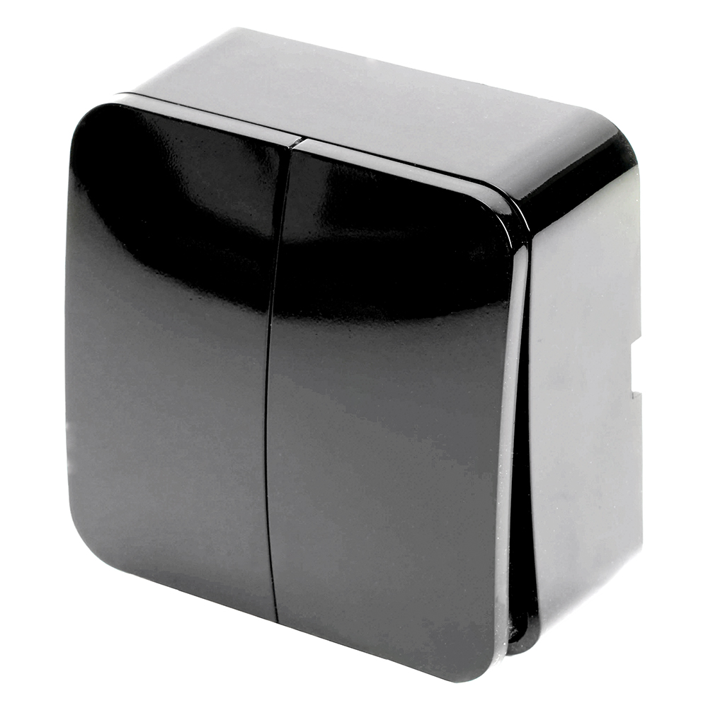 Выключатель открытой установки 2-клавишный, STEKKER, 250В, 10А, IP20, серия София, черный, MSW10-20-02