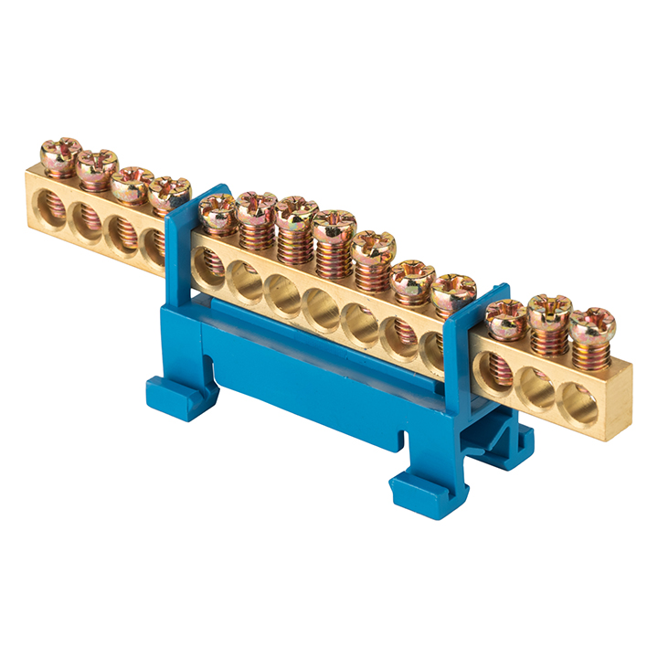 Шина "0" N (6х9мм) 14 отверстий латунь синий изолятор тип "Стойка" на DIN-рейку розничный стикер PROxima EKF