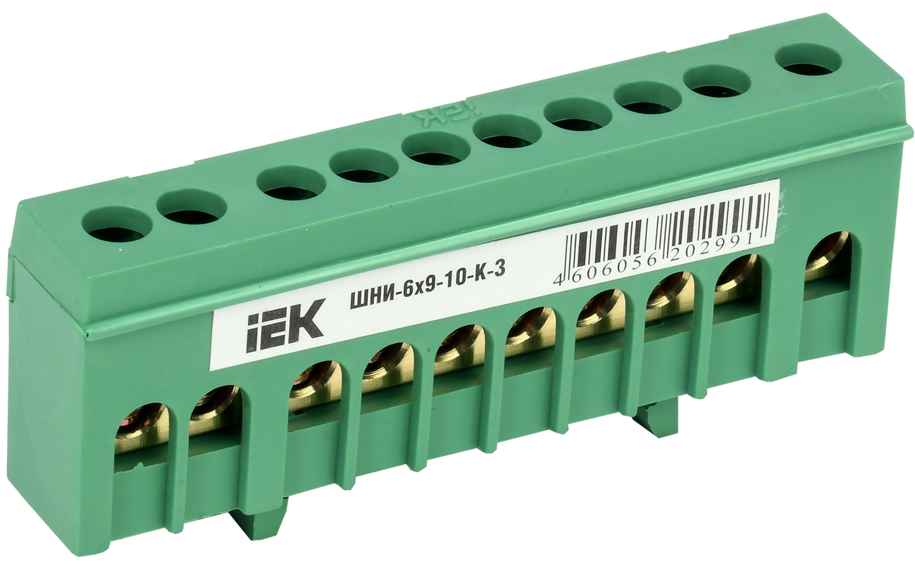 Шина PE "земля" в корпусном изоляторе на DIN-рейку ШНИ-6х9-10-К-З IEK