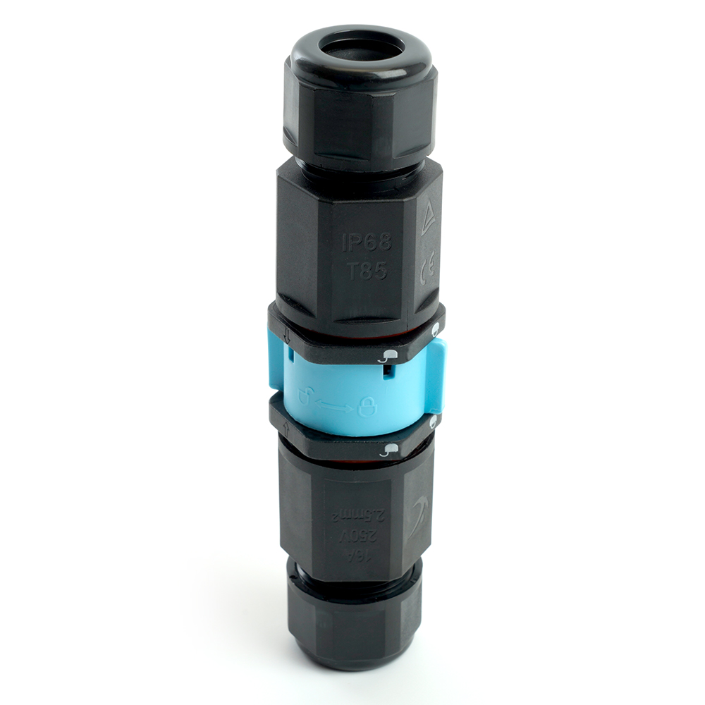 Соединитель-коннектор LD540 разъемный с замком 3-контактный, с пружинным контактом IP68, черный STEKKER