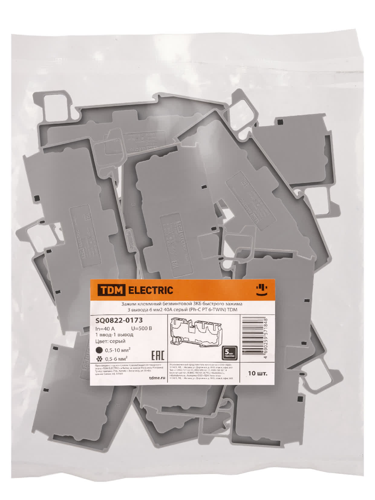 Зажим клеммный безвинтовой ЗКБ быстрого зажима 3 вывода 6 мм2 40А серый (Ph-C PT 6-TWIN) TDM доступен в интернет‑магазине ВольтМаркет. Покупая у нас, вы получаете дополнительные преимущества: