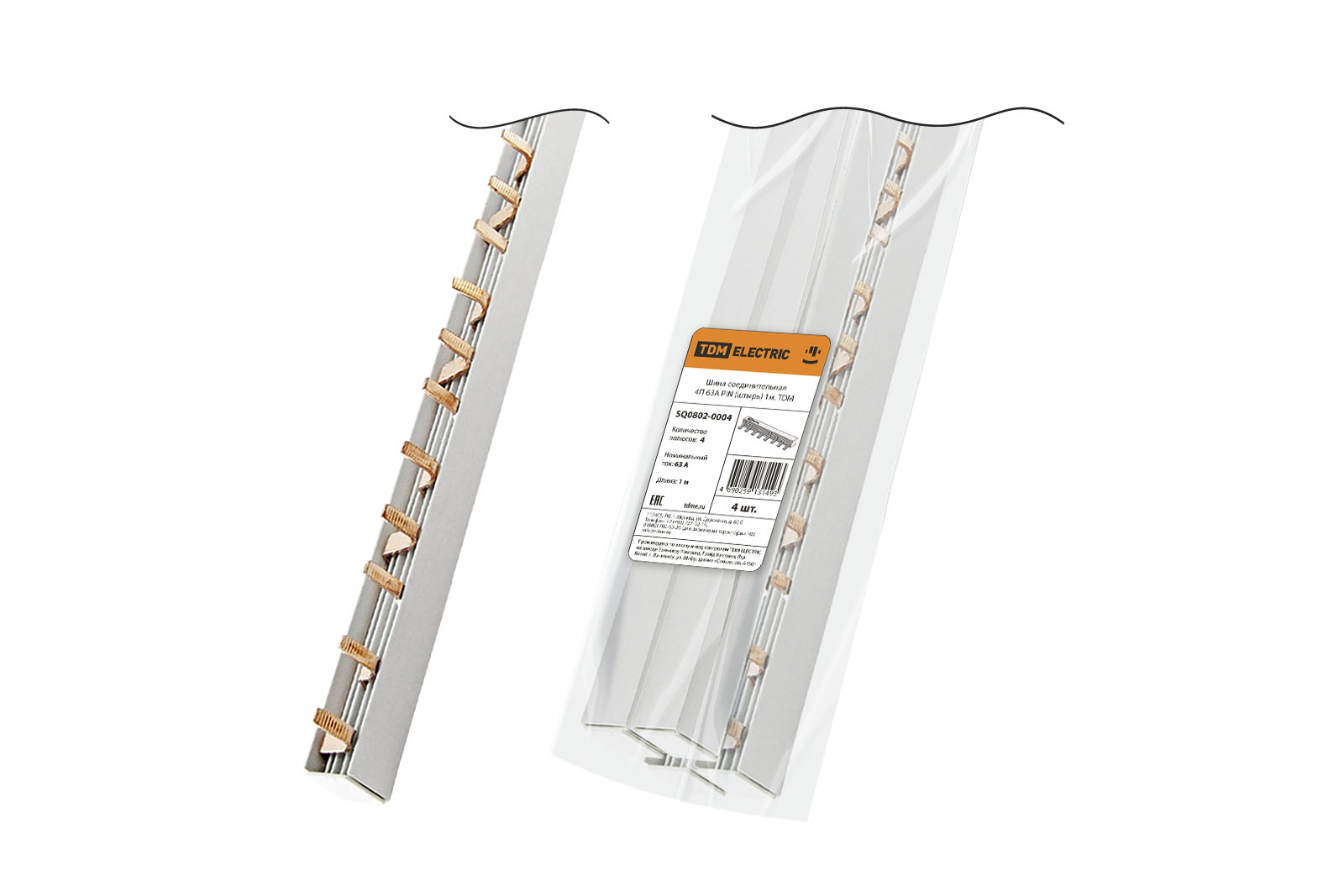 Шина соединительная 4П 63A PIN (штырь) 1м. TDM в Оренбурге