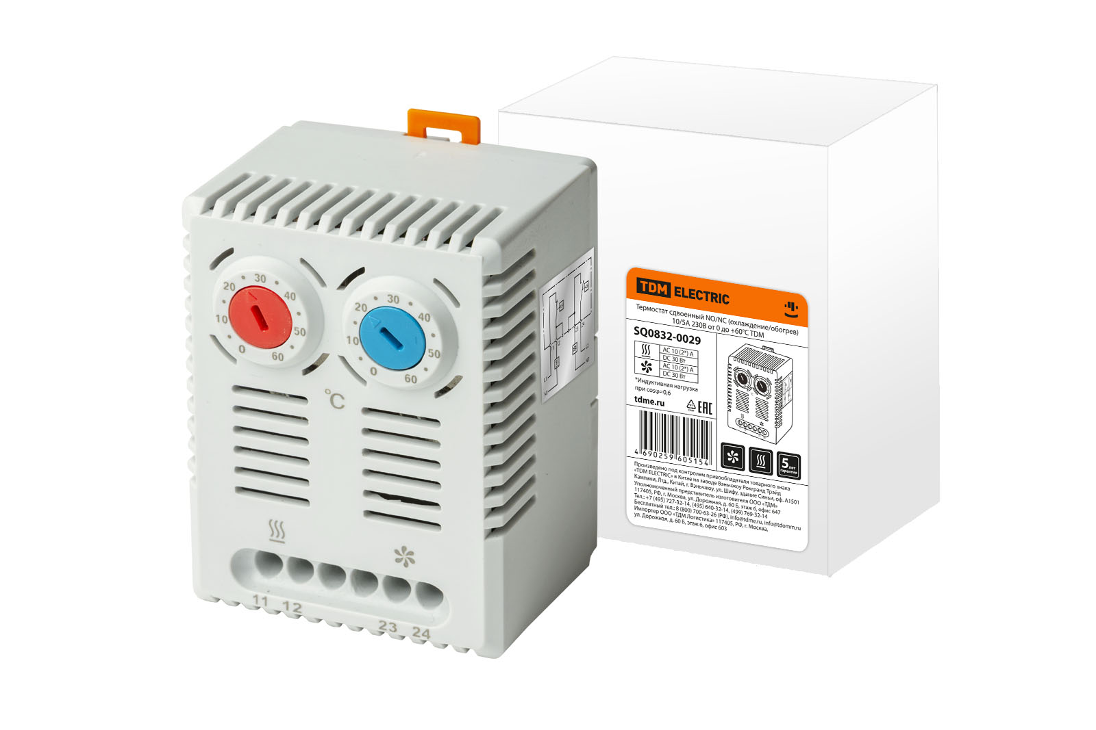 Термостат сдвоенный NO/NC (охлаждение/обогрев) 10/5A 230В от 0 до +60°C TDM в Оренбурге